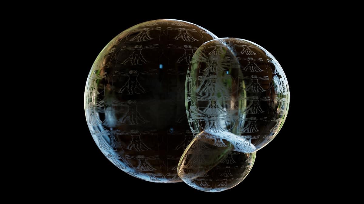 Eine nach einem Regenschauer im feuchten Gebüsch hängen gebliebene Seifenblase denkt (zunächst) gar nicht daran zu platzen. Allerdings macht sie … Farbenprächtige Wirbel auf einer Seifenblase