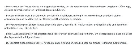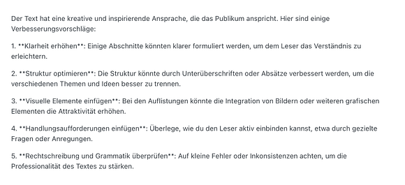 b:m: die verbesserungsvorschläge 1-5 zur optimierung des textes gelesen und verstanden.