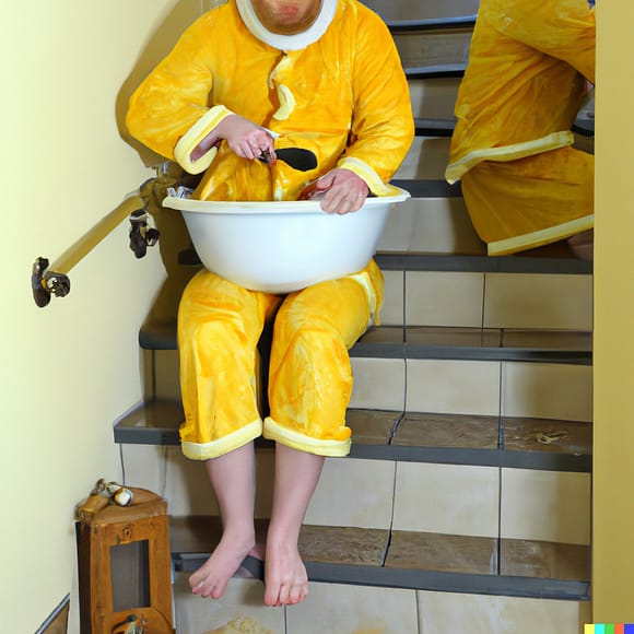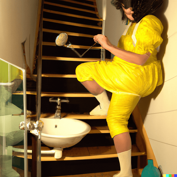 Seifenbecken in den Händen, für die Seifenblase, in welcher heute jede:r zu leben zu scheint, symbolisiert »Intimes und Privates«