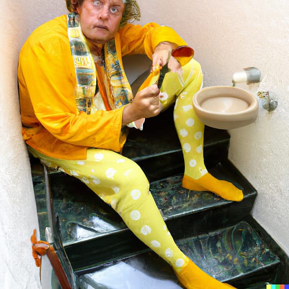 der gelbe Schlafrock (vermutlich der Künstler, Prediger oder Priester trägt)