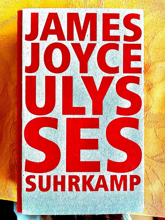 1927 in die deutsche Sprache übersetzt, lese ich die »Kultausgabe dieses Werkes zum 125. Geburtstag von James Joyce», die 2007 empfohlen wurde – wiederholt und wiedergefunden in Halbleinen mit rotem Ringsumfarbschnitt und in dieser speziellen Schriftprägung.