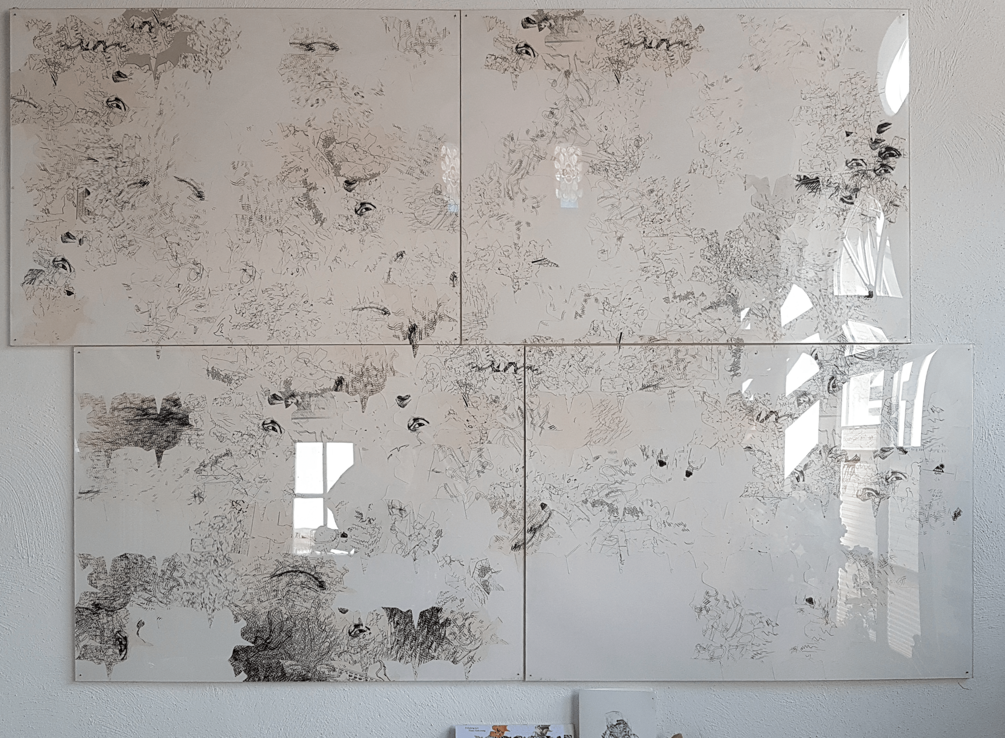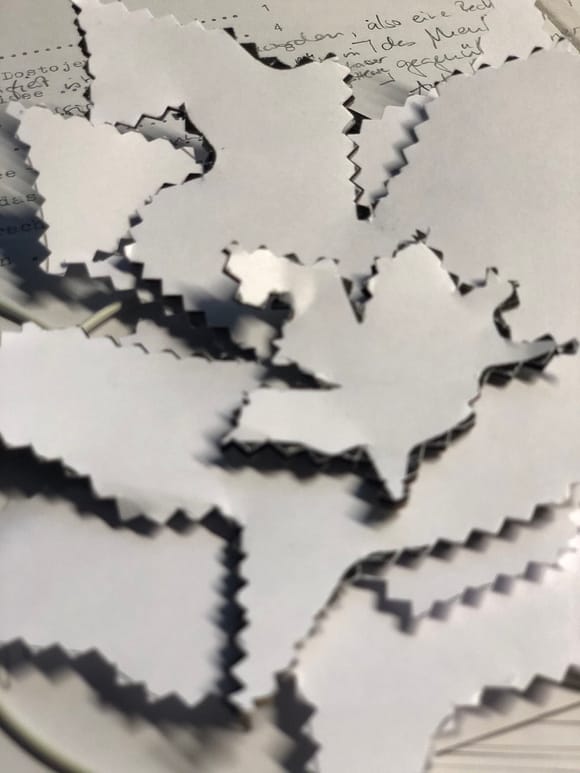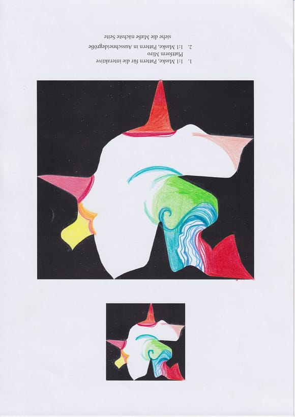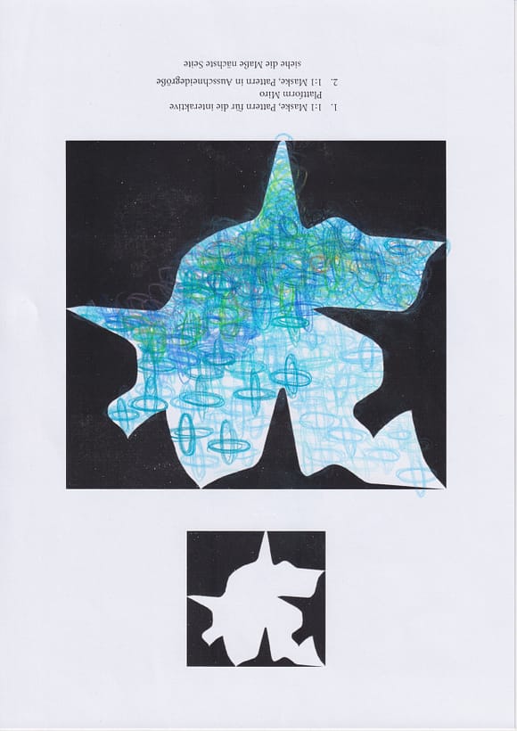 Die Pattern der Teilgebenden, welche gestaltet & zugesandt sind, werden quasi passgenau zu neuen „Bildern“ zusammengeschoben. Oder aneinander gelegt, geklebt, aufgehängt zu einer Tapisserie, Auswahl, Collage usw.. Zu Vorder- oder Hintergrund- oder Gruppenbildern oder zu Assemblagen am Screen, einer Wand, mehreren Wänden, Ecken, Decken am Tisch oder auf dem Fussboden. Zu variablen Schiebetafeln auf Tischober-Miro-Sonstigen Flächen (Mikro-Meso-Markoflächen) Oder zu dem Projekt in #Japanpapier mit Vorder- und Rückseite (Scheidewand – Paravent – Inframince) kombiniert, um es an den Römerhof zu senden, damit es dort ausgestellt, aufgehängt wird und sich als MailArt Projekt sanft einmischt und präsentiert. Wer es nicht macht, auch gut, die- und derjenige bleibt als #LEERSTELLE sicht- und beobachtbar im Projekt vorhanden. Als Muster künstlerischer Resonanz, Intervention und Auseinandersetzung mit den Themen: