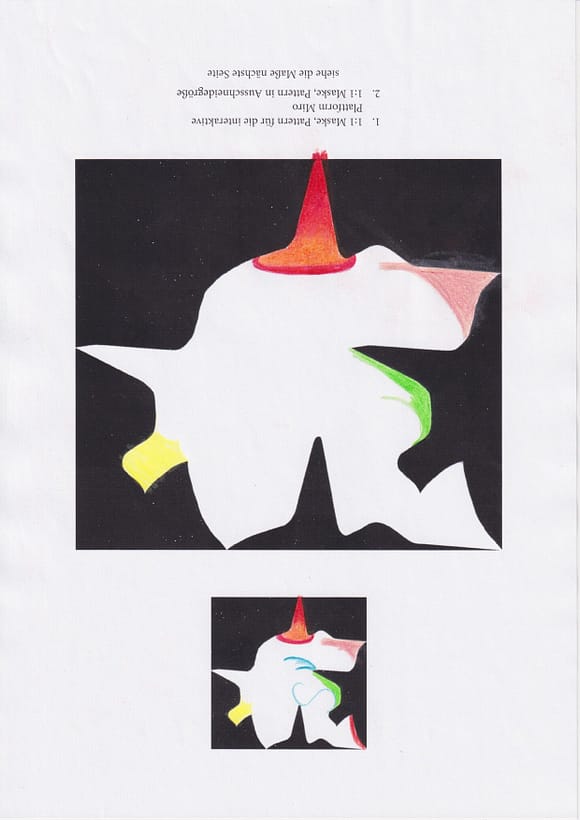 in pattern und #patternpaaren selbstverständlich oder natürlich sowie komplementär, naiv und wild zu denken, sich damit der Vergangenheit ebenso wie der Gegenwart und der morgigen Zukunft anzunähern. Spielerisch. Zusätzliche Sinn- und Symbolebenen situativ zum Para- und Kon-text mit oder in Gruppen kollektiv und im Zusammensein telepräsent besprechen und/ oder zeigen. Automatisch – bildende & forschende – visuelle und andere Kunst (Formen – Antiformen) #kunsttalk werden dabei herauskommen, sobald du teilgibst und teilnimmst. So einfach ist es. Bild – Text – Kompositionen – Graphic Novel – Video – Live-Stream usw. dienen zur Aufzeichnung jenseitiger Räume, Wesen und Existenzbedingungen, in die sich jede-r kontemplativ versenken darf, wenn es gewollt und gemocht wird. Wiederum sehr einfach. Text und Bild oder Bild und Text überbrücken Differenzen und Distanzen über die gesprochene & mündliche Sprache hinaus: zeitliche Distanz, räumliche Distanz, kulturelle Distanz. Distanziere dich, beginne zu tanzen, mit und ohne Maske: allein : Ganzkörpermaske-n sowie #Kostüme und #Habit.