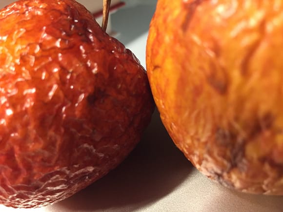 dieser Kontrast zwischen dem verwelkenden fauligen leblosen Apfel und dem im Saft stehenden Gegenstück, ist eine Demonstration der Vergänglichkeit!